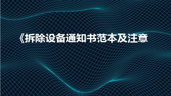 本文主要介绍了《拆除设备通知书范本及注意事项》一文,以引起读者的兴趣和提供背景信息。该文是为化工和工业领域的专业人士编写的,旨在帮助读者制定合适的拆除计划,同时提供相关规范和安全注意事项。文章详细介绍了拆除设备的目的、使用范围、适用人群以及社会背景,并提供了相关的范本和注意事项。