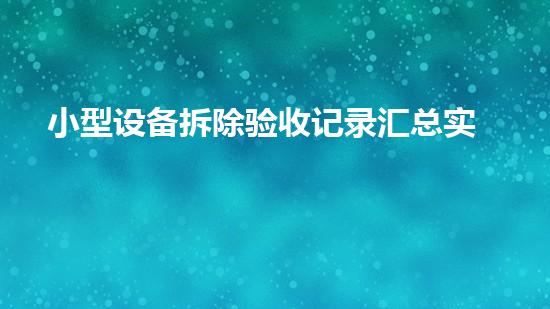 小型设备拆除验收记录汇总,是拆除工程中最为基础和最为重要的环节。通过汇总每个设备的拆除情况,可以清晰地记录下每个环节所经历的状况,从而找出出现问题的原因并进行改进。同时,在拆除工程的后期验收中,也可以根据这些记录,更精确地了解整个拆除工程的进展情况,确保拆除任务完成的质量和效率。