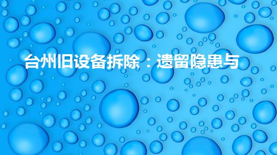 旧设备拆除后的遗留隐患是导致环境污染和健康风险等问题的主要原因之一。遗留隐患的出现是由于旧设备内部难以清理和剩余物质难以处置。同时,设备的拆除方式也会影响到遗留隐患的程度。例如,火拆方式会对设备内部的物质进行燃烧和扩散,造成遗留物质无法清除或无法有效处理,进而导致环境和健康问题的出现。