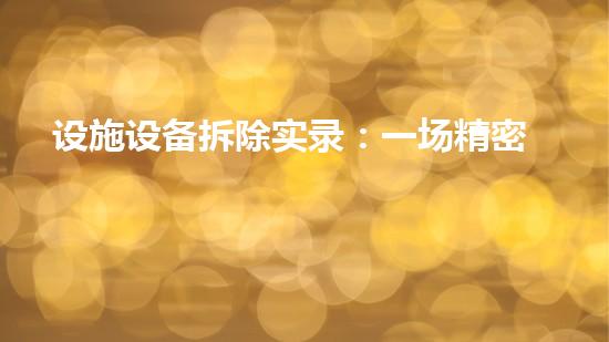 随着工业化的发展,工厂设施设备的拆除变得越来越重要。然而,设施设备拆除并不是一件简单的任务,需要一定的专业知识和技能。本文将介绍一场设施设备拆除实录,展示精密和协作所带来的解构之旅。