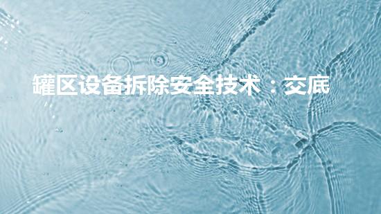 罐区设备拆除是一项非常危险的任务,需要谨慎地考虑和执行。本文将介绍罐区设备拆除安全技术的交底、实践和总结,以提高读者对此技术的了解和认识。文章将探讨罐区设备拆除的风险、技术和实践经验,以及如何在整个拆除过程中做好安全管控。本文也会引用巴洛仕集团化工拆除一站式解决方案和水刀不动火拆除技术的案例,以加深读者对这一主题的认识。
