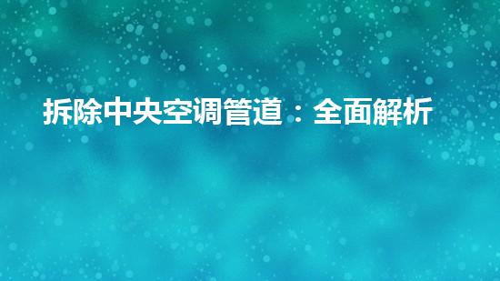 中央空调的存在,提供了很大的便利,但是如果中央空调管道拆除不得当,可能会对空调系统造成不可挽回的损失,甚至影响整个楼宇的通风。本文将对拆除中央空调管道方法及注意事项进行全面解析,从工具准备、安全防护、拆除顺序、拆除方式等角度阐述应注意的细节及技巧,并提供适用工具和安全注意事项,以期帮助读者按顺序拆除中央空调管道,提高拆除的效率和安全性。