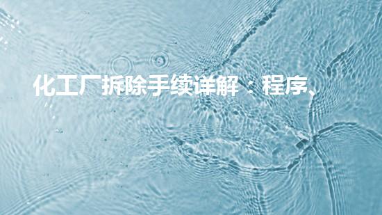 化工厂拆除前需要进行一系列手续程序,包括环境评估、工业和商业用途土地转让、建筑拆除许可等。首先,需要对拟拆除的建筑及其周边环境进行环境评估,以确定拆除对环境的影响和可能存在的风险。其次,需要办理工业和商业用途土地的转让手续,包括规划认定、土地出让、土地登记等。最后,需要向政府主管部门申请建筑拆除许可,申请过程中需要提供详细的拆除方案,保证拆除过程中的安全与环保。