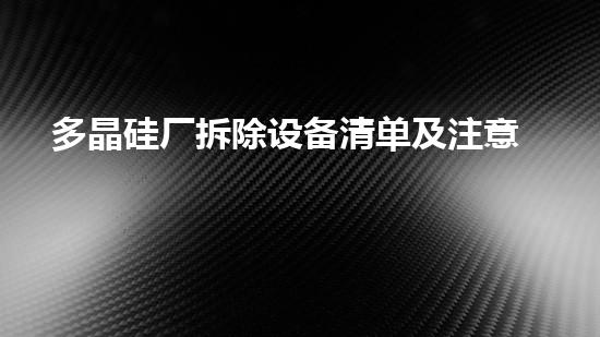 多晶硅是半导体行业的重要原材料,随着技术进步,市场对其需求越来越高。然而,多晶硅生产需要大量设备,随着市场需求的变化和技术更新,有时候需要进行设备的拆除。本文以多晶硅厂拆除设备清单及注意事项为中心,介绍了多晶硅厂设备拆除的一些具体情况,并分析了拆除过程中需要注意的几个方面。