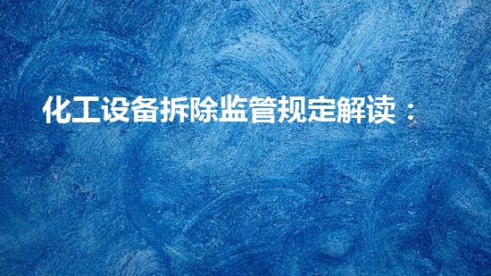 化工设备拆除监管规定对于化工行业操作的规范以及安全生产的促进具有重要的意义。本文通过了解和解析这一规定,详细介绍了化工设备拆除的程序、风险评估、技术要求、监管责任等方面。同时介绍了化工设备拆除领域的相关企业和技术发展现状。