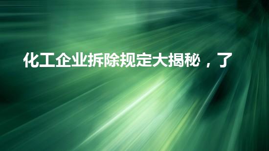 化工企业拆除有各种有关环境保护、安全等方面的规定,这些规定都需要严格遵守。一些规定包括: