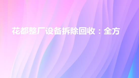 本文针对花都整厂设备拆除回收行业,进行全方位解读,包括行业现状和趋势,引出读者的兴趣并提供相关背景信息。随后,本文将从多个方面深入分析该行业的现状和趋势,包括技术应用、行业领域、环保意识、政策导向、市场竞争、未来展望。最后,本文总结出本文的主要观点和结论,并对未来的研究方向提出建议。