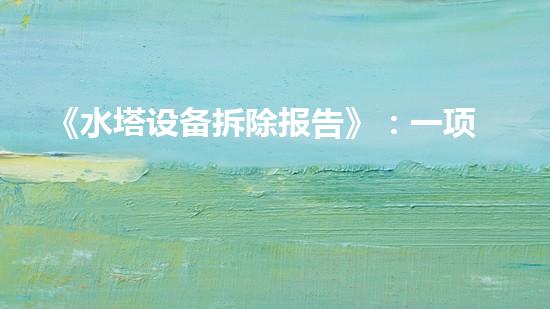 《水塔设备拆除报告》:一项必要的安全工程是一篇关于水塔设备拆除工程的专业报告。本文主要介绍了这篇文章的核心内容以及其重要性和必要性。同时,也提供了巴洛仕集团化工拆除一站式解决方案相关的信息,这将有助于读者更好地理解本文内容。