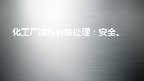 化工厂油罐拆除处理是一个环保、安全的重要问题,本文通过介绍巴洛仕集团的化工拆除一站式解决方案,阐述了如何在不动用火的前提下,安全、高效地处理化工厂油罐拆除问题。文章主要从四个方面介绍了该方法的优点和应用。
