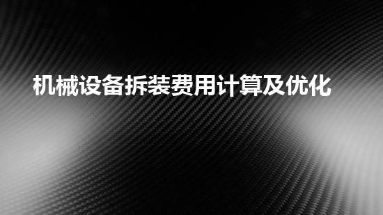 机械设备拆装费用计算及优化分析是现代工程管理中重要的一环。本文将介绍机械设备拆装费用的计算方法以及如何进行优化分析,以帮助读者更好地了解该领域的相关知识。