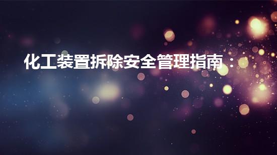 化工装置拆除安全管理涉及复杂的技术和流程,对各方面的安全管理都提出了非常高的要求。本文介绍了化工装置拆除安全管理指南,涵盖了措施、注意事项和风险评估等内容。同时,巴洛仕集团的化工装置拆除一站式解决方案,为化工行业提供了更好的解决方案和服务。
