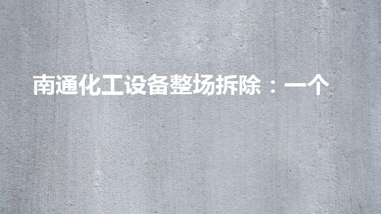 南通化工设备整场拆除是一个巨无霸企业,其陨落历程引人关注。本文从多个方面介绍南通化工设备整场拆除的情况,包括其历史背景、拆除的原因和目的、拆除的过程、拆除技术的应用和影响等方面,旨在为读者提供全面的信息和分析。