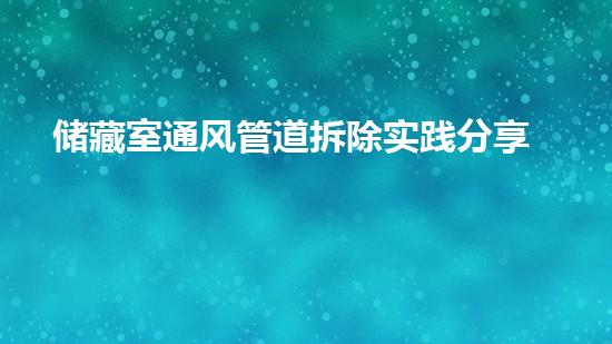 本文重点介绍储藏室通风管道拆除实践分享,讲述了此次实践中所遇到的安全隐患与解决方案。文章的主旨是通过分享实践经验,提高通风管道拆除安全,保障工作者的生命安全和身体健康。