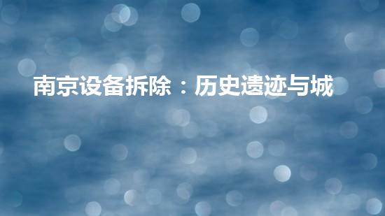 南京是一座有着丰富历史文化底蕴的城市,然而在城市发展进程中,不可避免地需要进行设备拆除。南京设备拆除的过程中,历史遗迹与城市发展并存,这是一个令人关注的话题。本文将就南京设备拆除这一主题进行深入探讨,旨在揭示设备拆除与历史遗迹保护的关系,以及如何在城市发展中促进历史遗迹的保护。