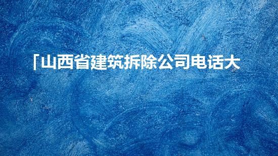 山西省建筑拆除公司电话大全,作为专业拆除技术服务的一站式解决方案,为人们提供了方便快捷的拆除服务。本文将从专业拆除技术的角度,对此进行详细深入的阐述。