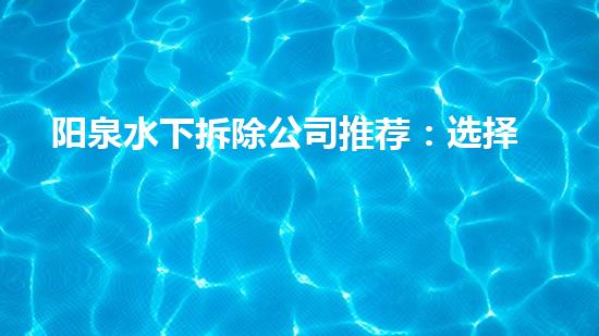 在阳泉市进行水下拆除作业的时候,选择有经验、高效率的拆除团队至关重要。本文将介绍阳泉水下拆除公司推荐,以及如何选择有经验、高效率的拆除团队。