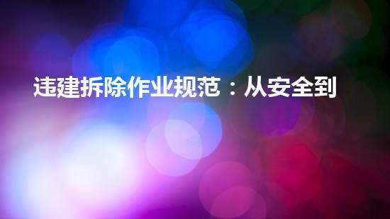 违建拆除作业规范是拆除行业必须要遵守的,在违建拆除过程中,不仅要考虑到安全,还要符合法律法规的要求,这是非常重要的。本文从安全到法律,全方位解读拆除流程与要求,详细介绍了违建拆除的各个环节,让读者全面了解违建拆除的作业规范。