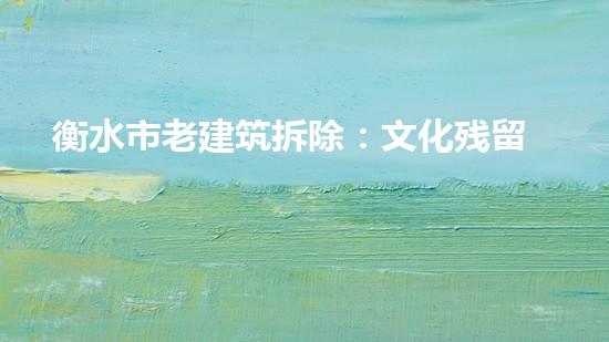 衡水市老建筑拆除:文化残留与城市更新是一个备受关注的话题。随着城市发展进程的加快,大量老旧建筑需要拆除才能给城市带来新的面貌,但在这个过程中,如何保护文化遗产的问题也备受关注。本文围绕这一主题展开,通过化工方面的专业知识深入探讨这一话题。