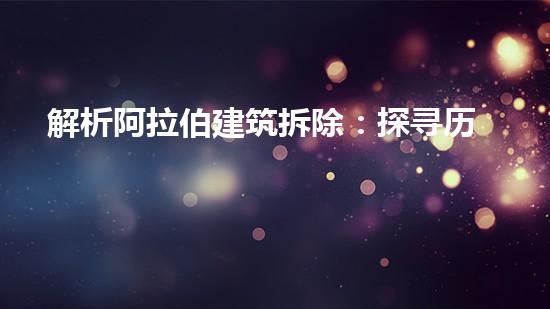 本文将围绕着阿拉伯建筑拆除:探寻历史文化与现代前景这一主题展开论述。阐述建筑拆除的重要性以及拆除过程中需要注意的问题和技术要求。此外,文章还将向读者介绍巴洛仕集团的化工厂拆除案例,介绍其无水切割技术的应用。巴洛仕无水切割技术是拆除行业的一项新技术,为减少环境污染和提高施工效率作出了很大的贡献。