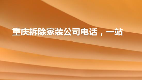 重庆拆除家装公司电话是一家提供一站式服务全方位护你所需的拆除公司。本篇文章将从拆除行业专家的角度出发,介绍重庆拆除家装公司电话的优点和特点。本公司提供的服务不仅仅局限于家装拆除,还包括工业拆除等不同领域的服务。同时,本公司使用的技术也逐渐创新升级,为客户提供更加安全、高效的服务。