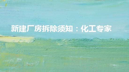 在新建厂房拆除工作中,化工专家可以为拆除工作提供很多实用的建议。通过进行透彻的安全评估、合理的规划和管理,以及采用高效的拆除工艺和环保方法,可以确保拆除工作的安全和顺利进行。在此过程中,应主动寻求专家的建议和支持,并密切监控拆除工作进展和现场控制。