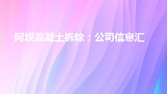 本篇文章主要介绍了阿坝混凝土拆除:公司信息汇总,展示了拆除行业中公司的相关信息,以及该公司在阿坝混凝土拆除方面的业务和成果。文章从多个角度进行阐述,提供专业深入的解释和支持,旨在为读者提供充分的信息和思路。