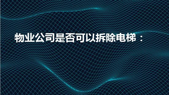 随着楼宇的老化,在物业管理中,对于老旧电梯拆除的需求也越来越大。然而,物业公司是否可以随意拆除电梯是一个复杂且具有争议性的问题。本文将从权力与风险两个方面来深入阐述物业公司是否可以拆除电梯的问题。此外,文章还会涉及一些相应的案例和技术应用。