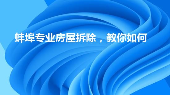 本文将详细介绍蚌埠专业房屋拆除,教你如何安全、快速、低价拆除楼房。通过本文,你将了解到这个专业领域的一些重要知识和技术,以帮助你在拆除楼房时更加高效地操作,并减少潜在的安全问题。同时,文章也会对一些相关领域的知识进行适当的提及。