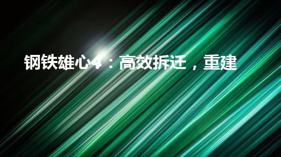 本文主要介绍了钢铁雄心4游戏中的高效拆迁和重建未来的主题,以及这个主题与现实世界中拆除行业的联系。文章主要从四个方面深入探讨了高效拆迁的技术和对环境的保护:拆除前的清洗置换、设备回收、危废处理和环保施工。其中,我们还会介绍巴洛仕集团化工厂拆除过程中采用的不动火水刀切割拆除技术,并探讨这项技术的优点和应用情况。最后,我们会总结主要观点和结论,并提出未来的研究方向和建议。