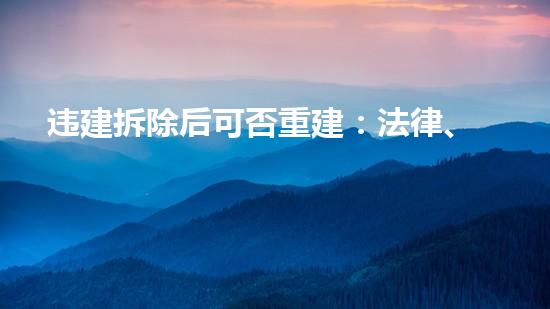 违建是指未经审批或违反审批规定擅自建造的建筑物,这些违建往往会对周边环境和安全造成重大影响。一旦发现违建,有必要对其进行拆除。但是,在进行拆除之后,是否可以重建呢?本文从法律、技术和实际问题三个方面进行深入分析,探讨违建拆除后是否可以重建,并提供相关建议。