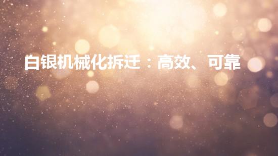 白银机械化拆迁:高效、可靠、安全是一个听起来很陌生的话题,现在随着城市建设的不断进行,拆迁和清理工作变得越来越重要。本文将结合专业角度从高效、可靠、安全等方面介绍白银机械化拆迁,阐述专家的观点和建议。