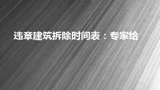 随着城市化的快速发展,违章建筑问题也越来越突出。在拆除违章建筑时,我们需要考虑到保留时间,防止出现环境污染等问题。本文将从化工厂拆除、污染物处理、拆除技术和环保施工四个方面,详细阐述违章建筑拆除时间表:专家给出保留时间建议。