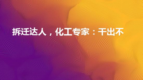 拆迁达人,化工专家:干出不一样的拆除!本文将介绍如何对拆迁工作进行巧妙的规划和管理,以及如何使用化工技术来实现对废弃物的清理和处理。本文采用专业术语,对于拆迁和化工行业有兴趣的读者来说,这将是一篇有价值的文章。