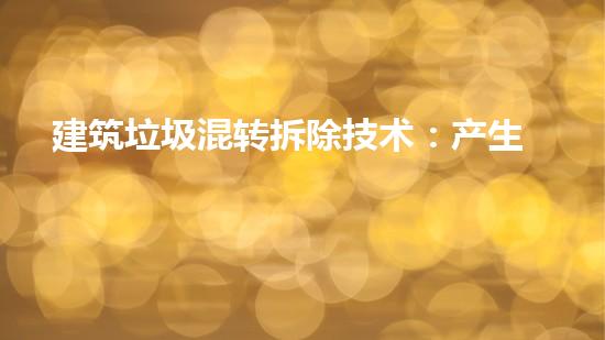 建筑垃圾混转拆除技术是指将建筑垃圾混合材料通过特定的处理和筛分,将不同种类的垃圾混合在一起,再加以再生利用的工艺。这种技术的一个显著优点就是可以将建筑垃圾最大化地利用,减少对环境的影响。
