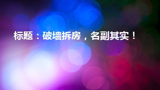 在拆迁行业中,XXXX拆迁公司以破墙拆房的实际操作效果而享有盛名。本篇文章将从四个方面介绍这家公司的专业知识和技术,包括拆迁前的准备工作、拆迁方法的选择、环保施工和废弃物的处理,以及新技术的应用。文章旨在详细解释这家公司的实际操作过程,分析其在行业内的地位和影响,并提供一些可行的建议,以帮助其他公司提高拆迁效率和环保水平。