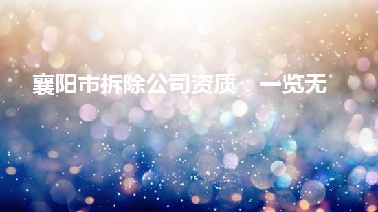 本文将介绍襄阳市拆除公司资质:一览无余,让读者了解拆除行业资质的重要性和目前襄阳市拆除公司的具体情况。