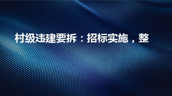 随着城市化和工业化的快速发展,村级违建问题变得越来越严重,必须得到有效解决。本文以村级违建要拆为主题,介绍了招标实施和整治规范的相关内容,旨在引起读者的兴趣并为解决这一问题提供背景信息。