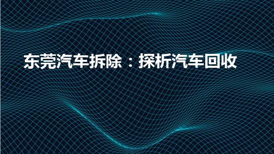 汽车拆除已成为全球性产业,而可持续发展也成为这个领域的核心主题之一。本文将以东莞汽车拆除为例,深入探析汽车回收利用的可持续发展之路,并给出建议和展望。