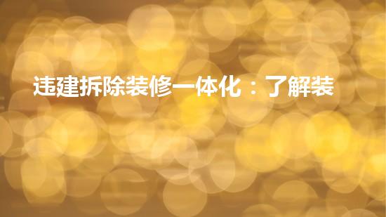 总之,违建拆除装修一体化服务将成为建筑行业未来的一个重要发展方向。这种服务不仅可以解决违章建筑问题,也可以为城市建设与发展作出更大的贡献。对此,企业应该切实履行社会责任,依法合规,适当降低拆除和修缮的成本,并增强其效益,同时确保环保和安全等核心问题得到妥善解决。最终,通过违建拆除装修一体化服务,我们可以实现城市建设的可持续发展,为人民提供更好的生活环境和生产条件。