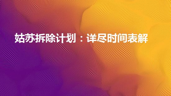 随着经济的全球化以及城市化进程的快速发展,城市建设和拆除成为了当前社会普遍存在的事实。针对这一现象,姑苏市政府制定了详尽的拆除计划,希望能够更加有效地保障城市的建设进程。本文将从化工行业的角度深入分析姑苏拆除计划的实施过程,并对其中的重要时间节点进行详尽解析,以此引导读者更好地理解拆除计划的实施步骤和意义。
