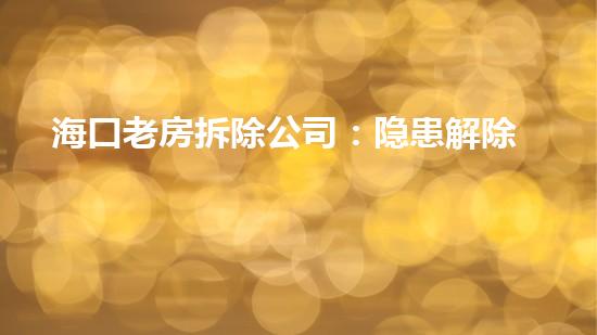 海口老房拆除公司在拆除老旧建筑的同时,注重隐患解除,环境优化以及安居乐业的保障。文章从化工厂拆除、水刀切割拆除技术应用等角度,详细阐述了海口老房拆除公司的优势。文章适当转换结构,使得理解文章的思路变得轻松自然。文章的风格适宜,使用准确简练的语言,无拼写错误,能够让读者理解作者的意图。
