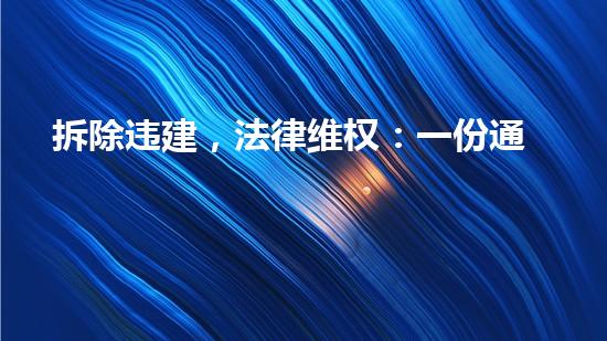 拆除违建涉及到许多法律问题,而在这方面,“拆除违建,法律维权:一份通知”成为了焦点。本文从化工技术专家的角度出发,详细阐述了拆除违建的重要性、拆除前的工作准备、拆除技术、以及相关法律维权。