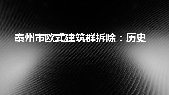 泰州市欧式建筑群被拆除之后,历史文化遗产便面临着何去何从的问题。本篇文章将从拆除行业专家的角度出发,探讨欧式建筑群拆除背后的原因以及可能产生的影响。同时,还将深入讨论拆除行业的高科技技术在拆除欧式建筑群中的应用。