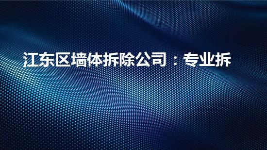 江东区墙体拆除公司具备专业技术、安全保障、高效迅速的特点,为市场带来了卓越的服务。本文将从专业技术、安全保障、工作流程、设备使用等几个方面详细阐述江东区墙体拆除公司的优越性。