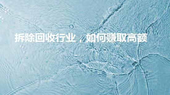 拆除回收行业是化工行业的重要环节,其中包括设备回收、污泥减量化、废液处理、油罐拆除、危废处理等环节。如何赚取高额利润,是拆除回收企业关注的重要问题。本文从化工专家的角度出发,深入分析了拆除回收行业赚取高额利润的方案和策略。文章内容结构清晰明了,深入浅出,为读者提供了一份详实的拆除回收行业创业指南。