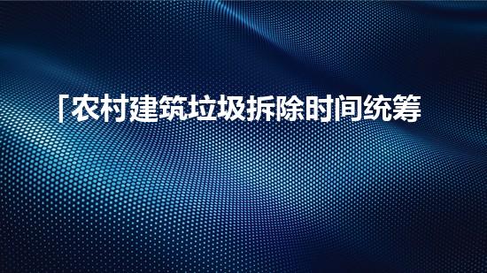 通过本文的论述,我们可以发现,农村建筑垃圾拆除时间统筹方案对拆除工程具有至关重要的作用。整个拆除过程应该充分考虑工期、拆除顺序、现场安全、人员安排、环保施工等因素,保证拆除工程在整体效率和环保效益之间达到一个平衡,更好地服务于环境保护事业。为了达成这一目标,需要专业的工程技术人员和管理人员的共同努力,加以统筹规划和安排,使农村建筑垃圾拆除工程能够顺利完成。因此,拆除单位应该注重拆除时间统筹方案的细节和实践,以确保拆除工作的安全和良好效果。