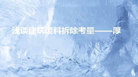 随着城市化进程的不断加速,建筑废料拆除已经成为了一项重要的工作。在进行建筑废料拆除时,考虑厚度是至关重要的。本文将从四个方面对浅谈建筑废料拆除考量——厚度为中心做详细专业深入的阐述,包括合适的拆除手段、适当的施工方式、废料的处置方法以及环保措施等方面。