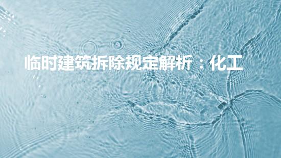 本文主题是“临时建筑拆除规定解析:化工技术专家视角”,主要从化工技术专家的角度对临时建筑拆除规定进行分析。其中,「临时建筑拆除」指的是需在短时间内修建和拆除的建筑物,包括临时用房、展馆及其他短暂性建筑物。本文详细阐述了临时建筑拆除的相关规定,并从化工技术专家的角度出发,探讨如何确保拆除过程中的环保、安全及资源使用效率。