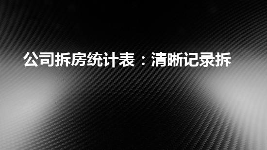 拆除行业对于拆房进度的清晰记录非常关键,这篇文章将会介绍一种专业的方法,通过公司拆房统计表,来清晰记录拆除工程进度。公司拆房统计表是一个简单却非常重要的工具,可以帮助监督拆除工程的进度,从而提高拆除效率和减少拆房过程中的安全风险。在接下来的正文中,我们将从几个方面对公司拆房统计表做深入的阐述。