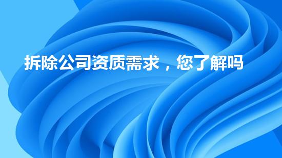 随着化工行业的日益发展,拆除公司资质需要化工技术专家的深入研究和分析,才能够为企业提供最佳的解决方案。公司资质拆除确实涉及的多方面的知识和技术,需要专业的人员和团队才能够完成。希望本文能为读者提供一些启示和帮助,为化工业的繁荣和发展贡献自己的一份力量。